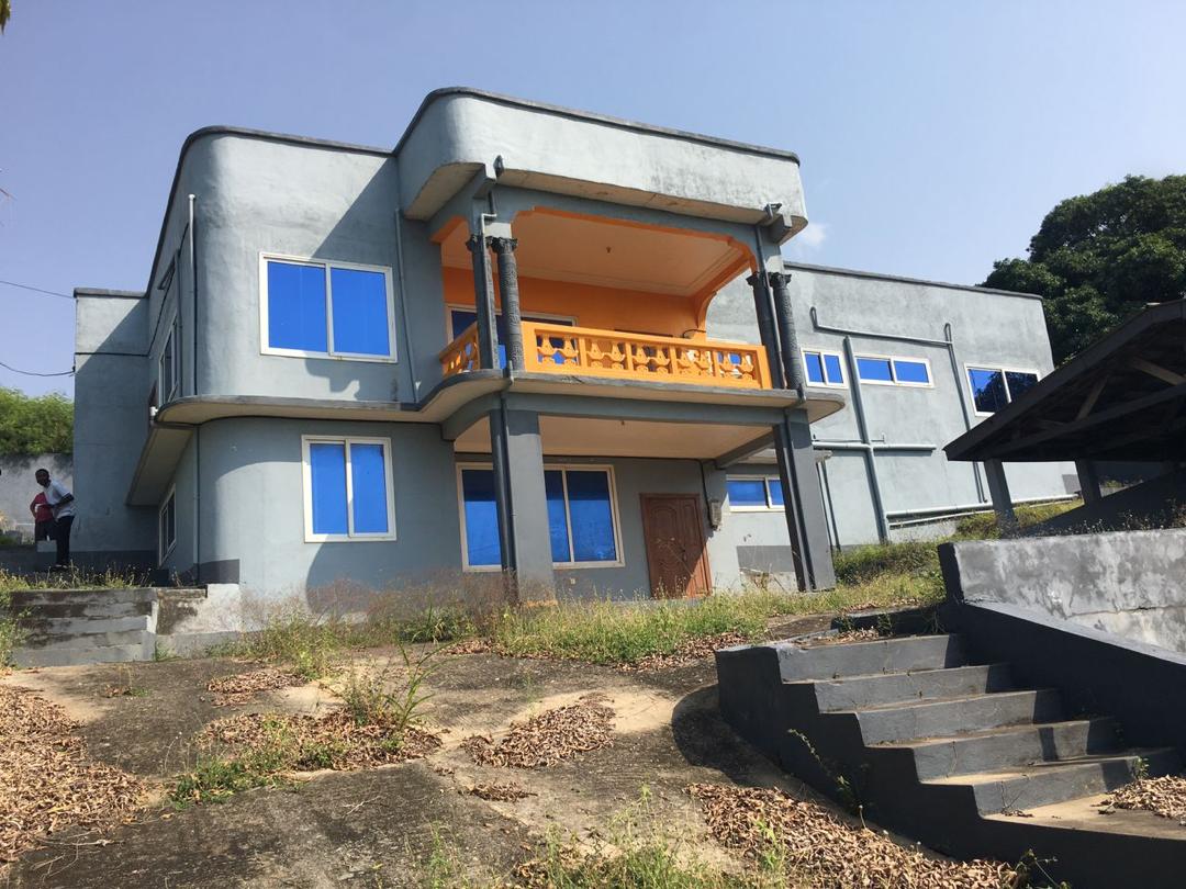 Property is a two (2) storey building fully completed house. It sits on approximately 1 acre of land with about 70% of the land undeveloped. It is fully fenced and gated and in a very calm and serene environment. It consist of 5 bedrooms, one at the ground floor and 4 at the first floor. The property offers a clear and direct view of the ocean about 300m away. Property details: Ground floor – Master bedroom suite with wardrobe, kitchen, big hall. First floor – 3 bedrooms (all suites), Two (2) halls, Dining hall, store with a terrace. It is located at Essipon along the Veivaag Lodge Road, few minutes’ drive from Sancourt hotel. Essipon is a developing area which encompasses several residential and commercial facilities. Notable among them is the Essipon Sports Stadium, Veivaag lodge, Prospectors Inn and some other recreational facilities around and along the coast.